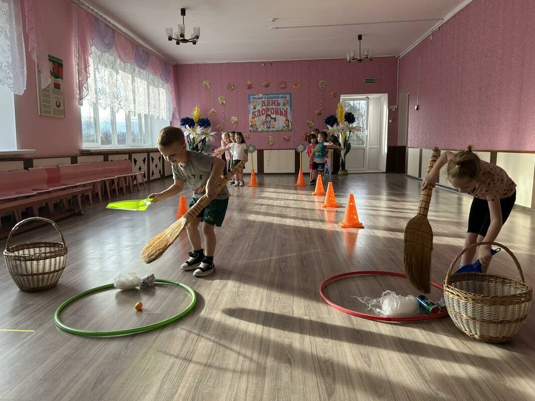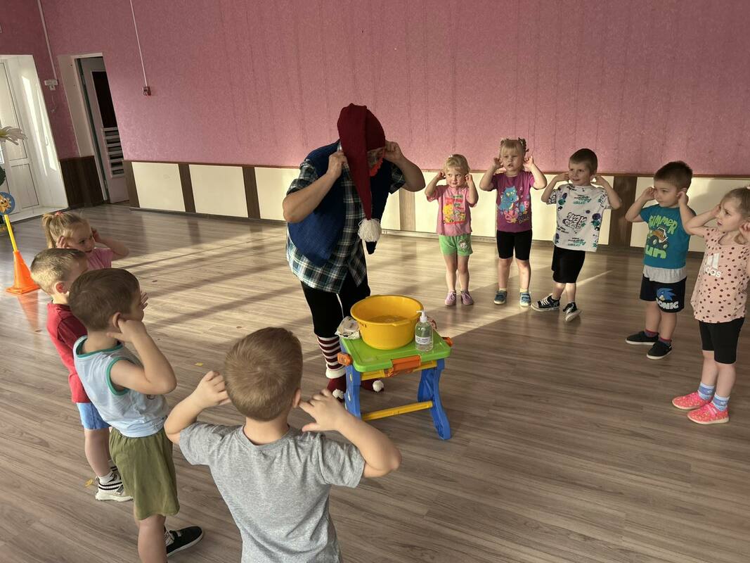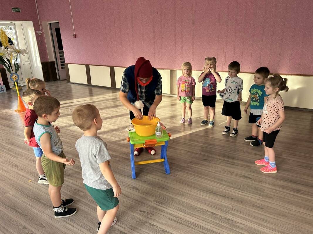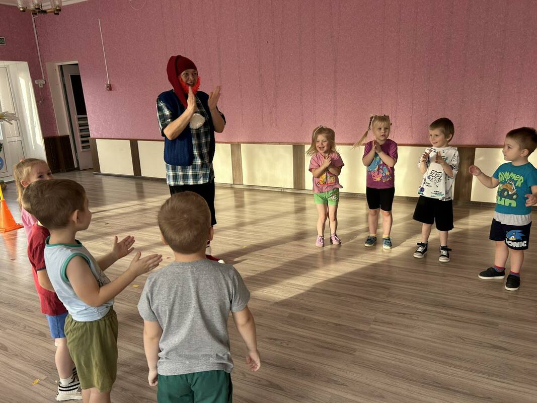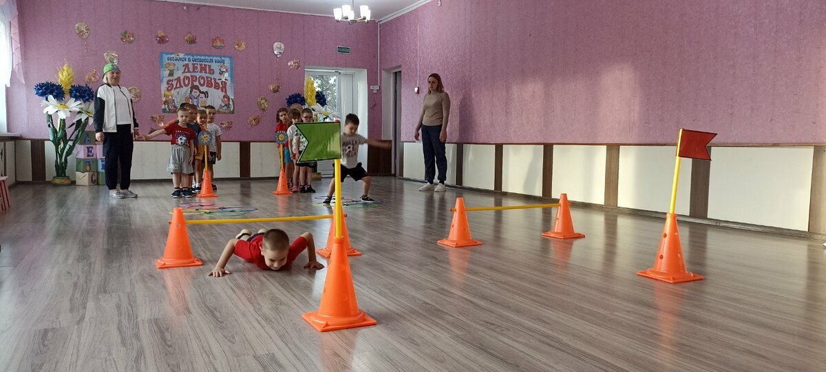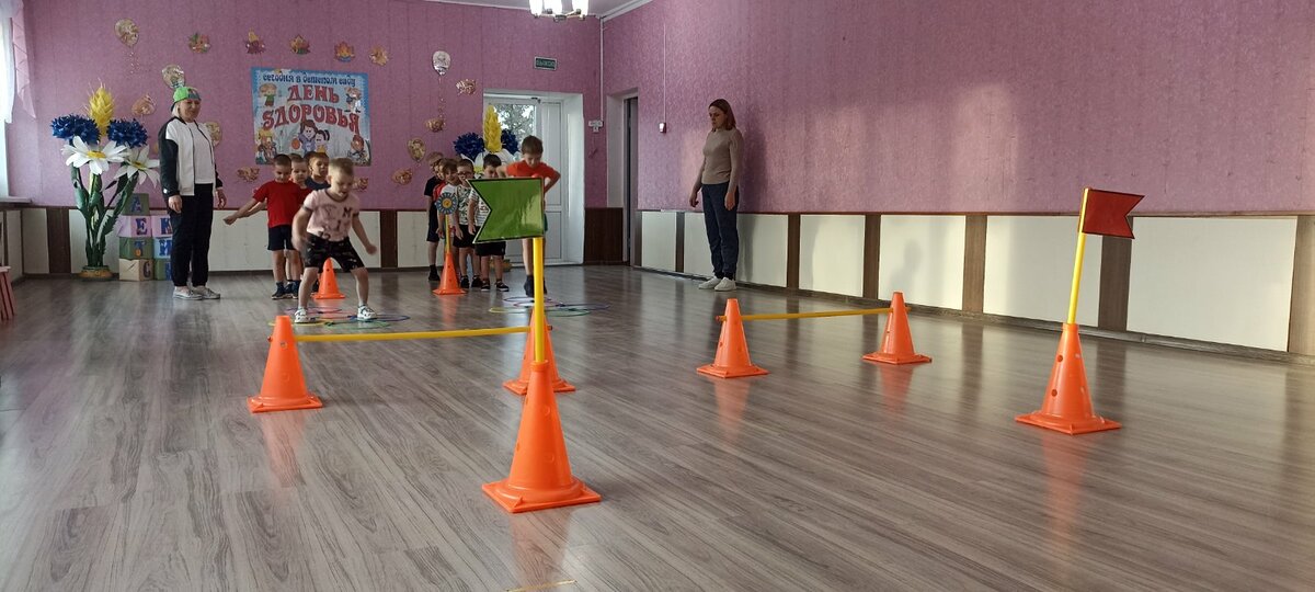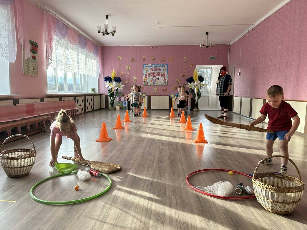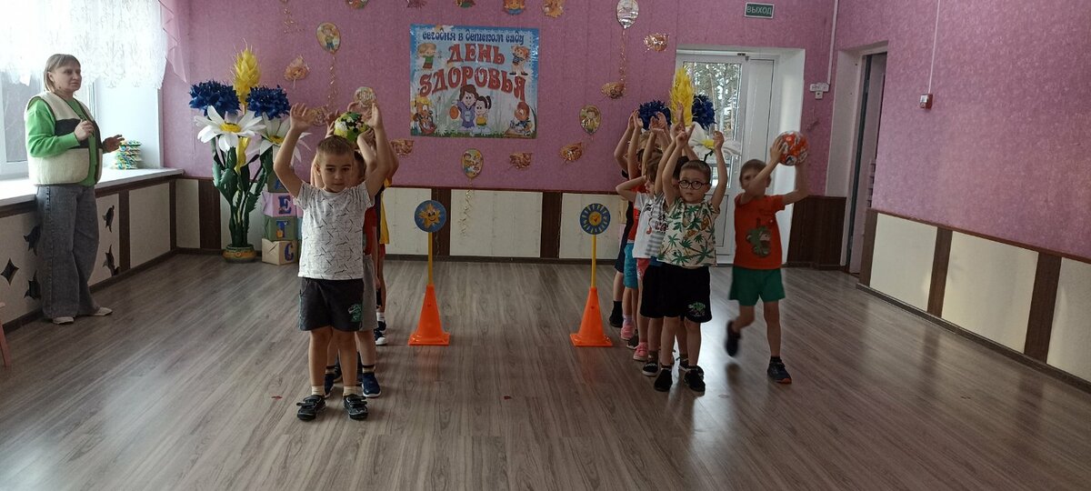 В детском саду прошел День здоровья. Утром воспитанников встречал Закаляйкин, который провёл с ребятами утреннюю зарядку. После завтрака ребята старшей группы снова встретились в зале Закаляйкиным, где прошёло физкультурное развлечение "День доровья". Ребята закрепили представлени о том, что каждый человек должен сам заботиться о своём здоровье с детства, а также развивать быстроту, силу, ловкость, выносливость, что повышает защитные силы организма, уточнили знания о необходимости наличия витаминов в организме человека, и роли спорта и физических упражнений в сохранении здоровья человека. Также ребята отработали умение работать в команде.