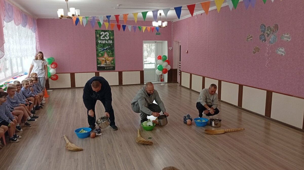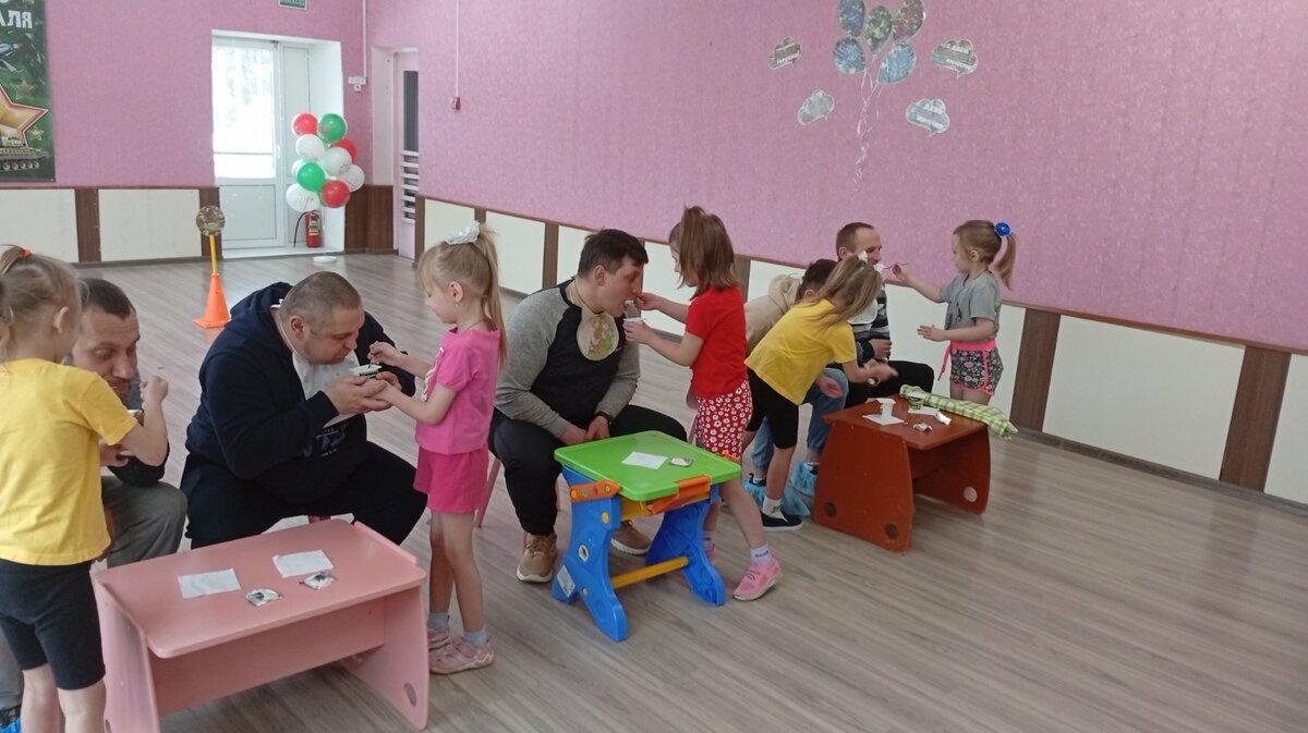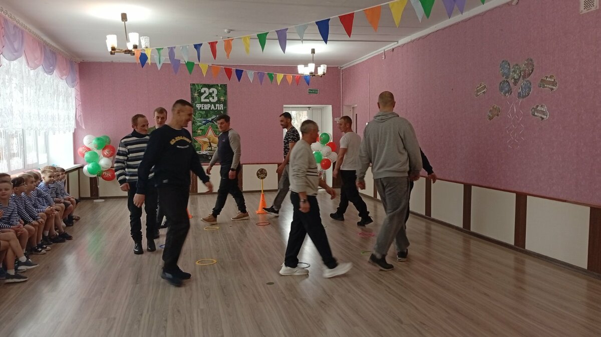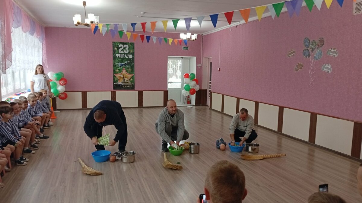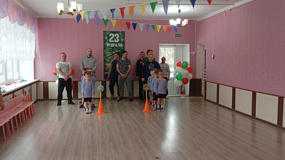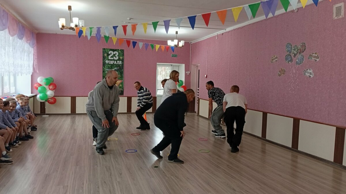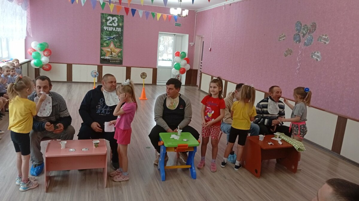Ребята вместе с папами соревновались, участвовали в конкурсах, танцевали, ну и конечно поздравляли пап!