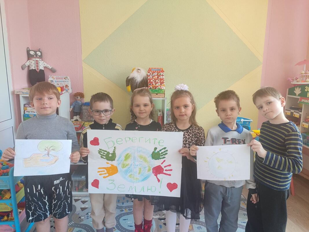 Воспитанники старшей группы в игровой форме знакомились с правилами бережного отношения к природе. Для детей были организованы: экологическая викторина «Наш общий дом», создание коллективного плаката «Берегите Землю», наблюдения и труд в природе. Ребята в ходе прогулки смогли найти насекомых, прибрать территорию огорода, обратив внимание на то, что уже цветет клубника, а на березе появились листочки, понаблюдать за веселым скворцом, поселившимся в скворечнике на участке, а также смогли почитать стихи о природе, отгадывали загадки о животных и растениях, решали проблемный вопрос "как беречь землю?"... Подводя итоги дня, ребята определили, что Земля нужна не только людям, но и животным, растениям, насекомым, и что всё в природе взаимосвязано, что нужно соблюдать конкретные правила поведения в природе: не мусорить, не ломать ветки и не рвать цветы без нужды, экономить воду и свет, кормить птиц зимой и даже маленький человек может помочь планете: убрать мусор возле веранды, закрыть кран с водой, посадить цветок.